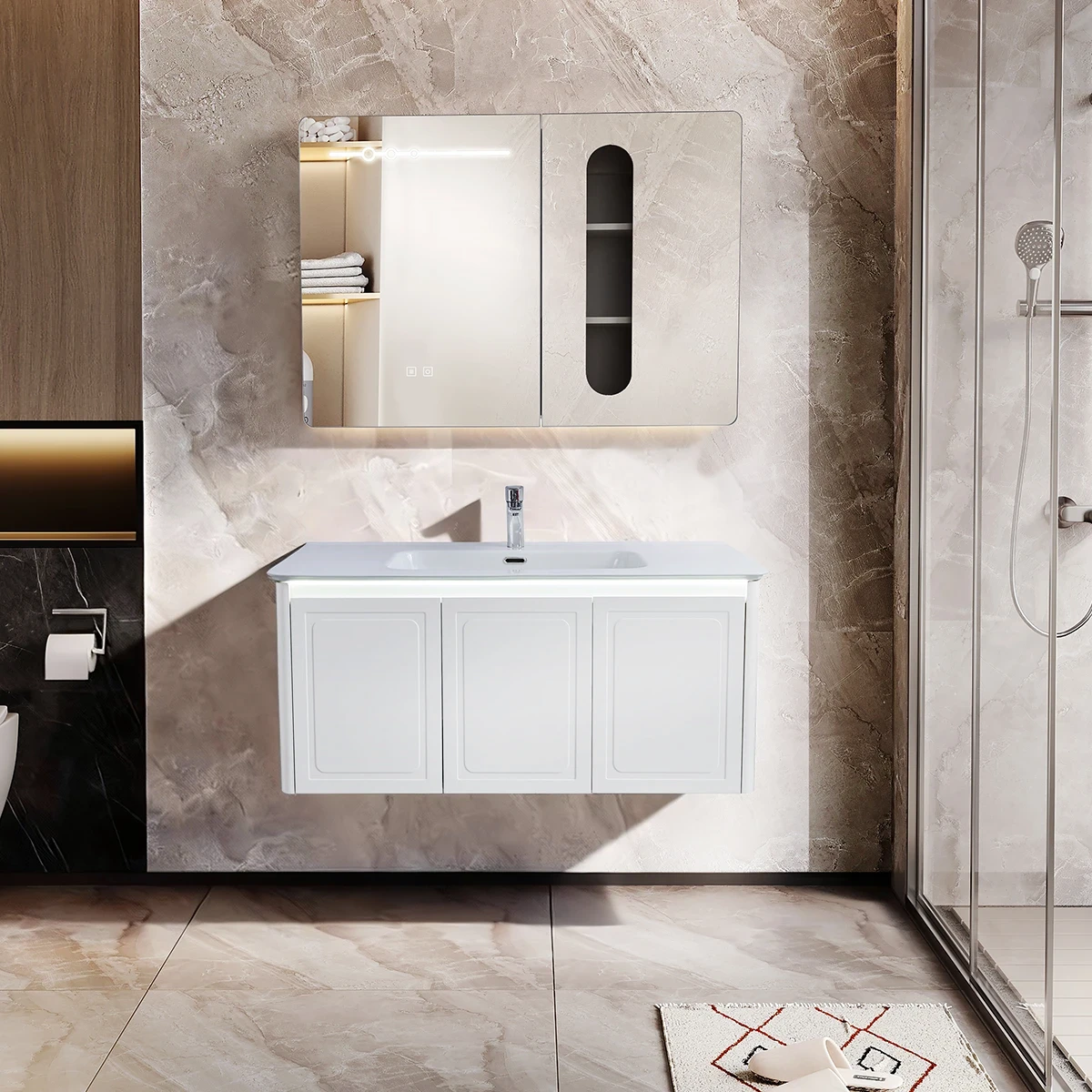 Zestaw Szafka – 100cm, umywalka, lustro z szafką – SU-812 – SWISS MEYER
